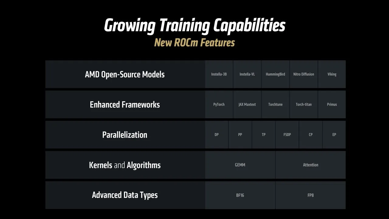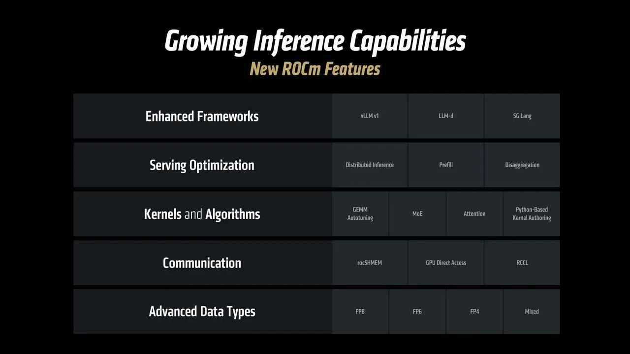 • ROCm llega a Windows y GPUs Radeon, permitiendo ejecutar cargas de IA en PCs con Ryzen (discretos y portátiles) a partir de la segunda mitad de 2025.